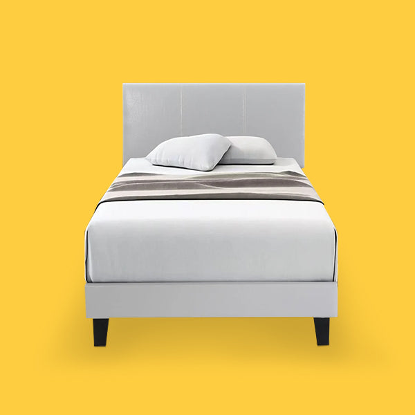 Grey PU Double Bed with Contrast Stitching IF-5450 ( OPEN BOX )