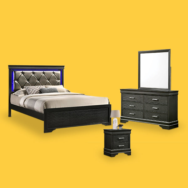 Freya Wooden Grey Bedroom Set With LED Headboard 785