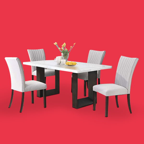Faux Marble Finish Dining Table with White Velvet Chairs 3355 / 247