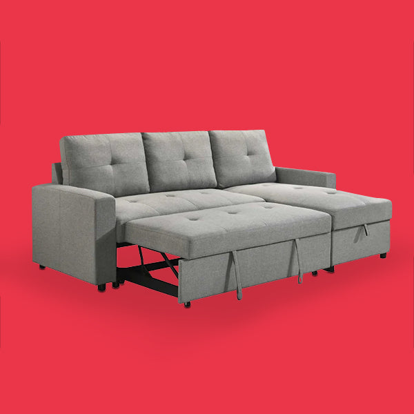 Jaxon Reversible Sectional Grey Fabric Sofa Bed With Tufted Back KMP001