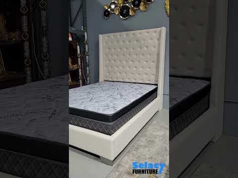 Daria Beige Fabric Upholstered Bed With Button Tufted Headboard B655