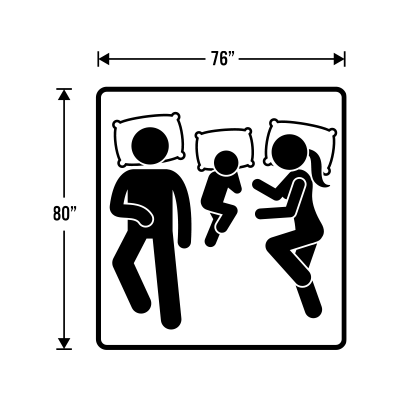 King Size mattresses are great for couples looking for luxury comforts, more sleeping space, or room to share with children and pets. King sized mattresses measure 76" X 80" and they are the largest mattress size by US standard manufacturing. It is encouraged to measure the room’s floor space before buying a King size bed to ensure a comfortable fit.