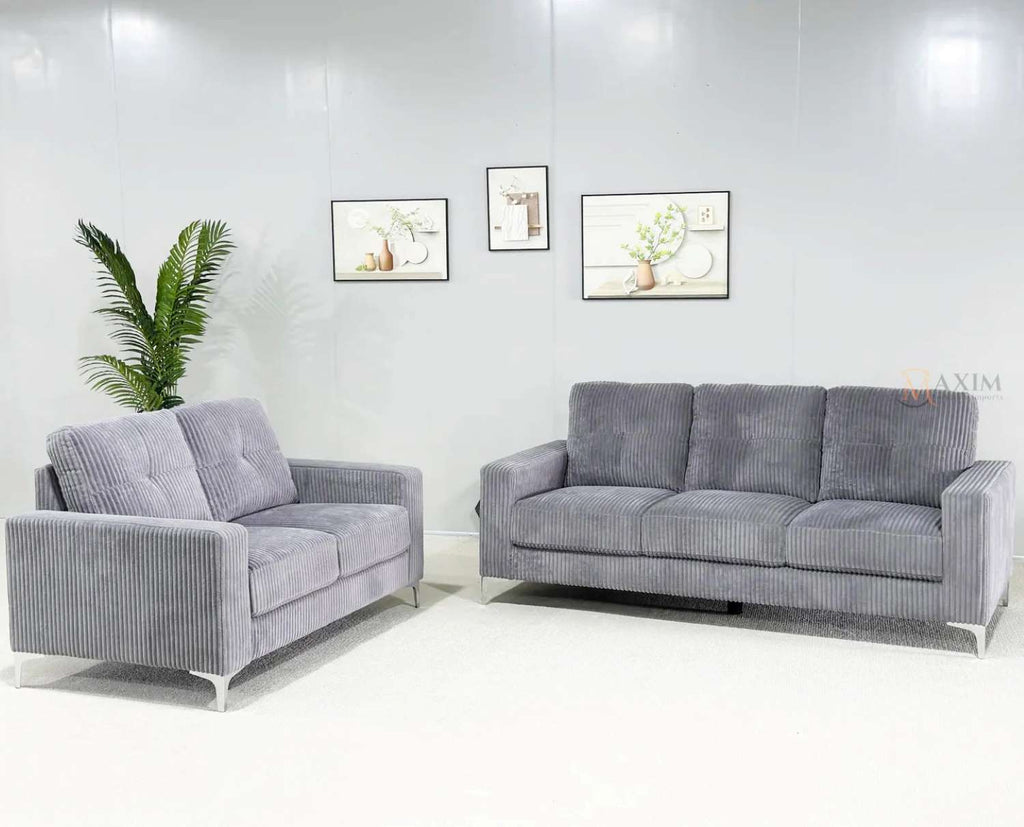 The Bono collection brings refined comfort to your living space with its distinctive corduroy grey upholstery, offering a tactile elegance that complements contemporary and classic interiors alike. This two-piece sofa set features a soft to medium seating experience, striking the perfect balance between plush comfort and supportive structure. Anchored by sleek steel legs, the design delivers a modern aesthetic with enduring quality. An ideal choice for those seeking sophisticated style without compromising on everyday livability.