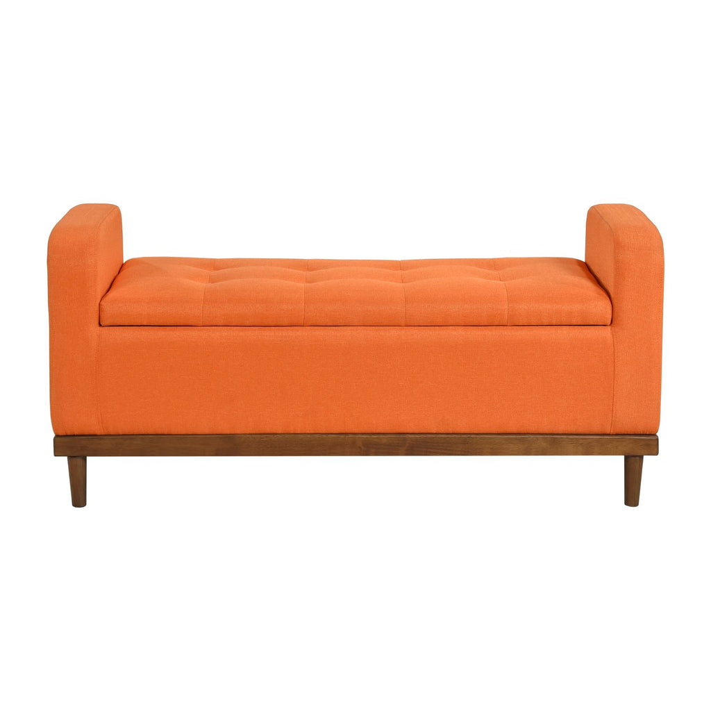 Mid-Century Modern lines define the design of the Brigitte Collection, providing both seating and storage in one functional piece. The accent bench’s interior space creates function beyond the button-tufted lift-top seat, providing the perfect space to store your decorative pillows and blankets. The brown textured fabric upholstery that covers the storage ottoman is perfectly complemented by the walnut finish of the solid wood support frame.