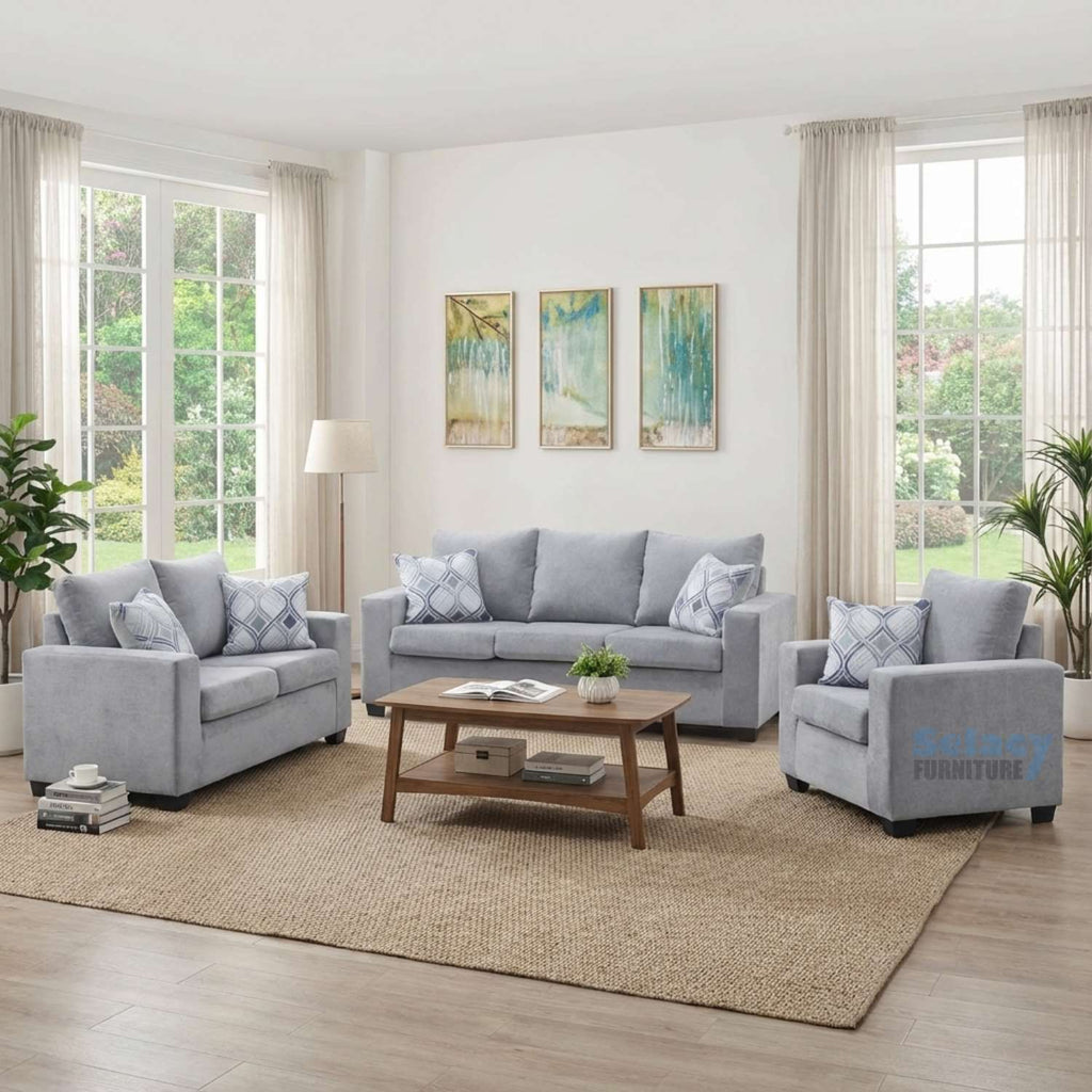 This luxurious Canadian Made Sofa Collection 1406 offers a comfortable seating solution with its solid wood frame, durable polyester-based fabric, plush foam seating, and removable back and seat cushions. Enjoy maximum comfort with the included free pillows.
