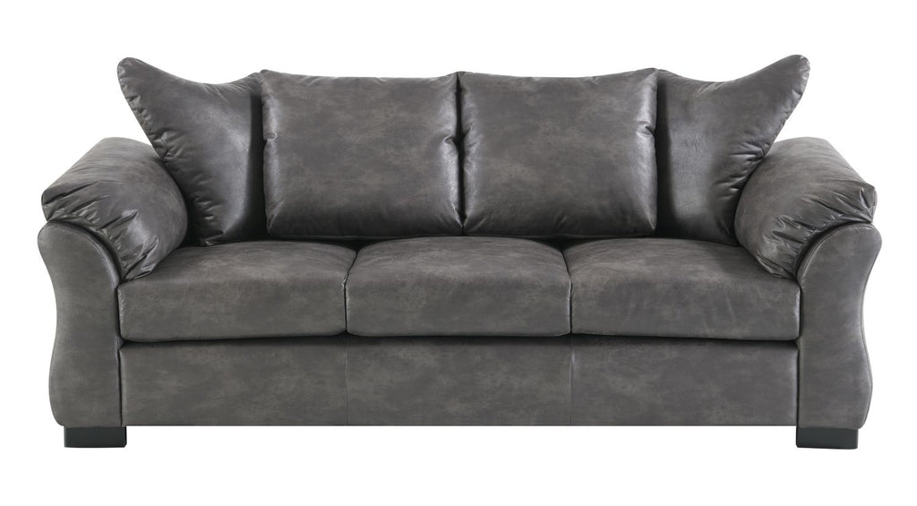 If you are the type of person who loves to sink into a pile of pillows, the Corso Collection was designed for you. This elegant 3-piece set takes a transitional modern profile and wraps it in velvety soft polished microfiber upholstery in a dark grey hue. The low frame is cushioned by a pillow-style back formed of large pillows that are both removable and fully reversible, making them easier to plump up and to clean. The curving flared arms are also bolstered with pillow-style arms for padded softness that just won’t quit. Crafted with sturdy wood framing, superior seat construction, and exposed wooden legs in a dark finish, this set is designed to be a long-lasting staple in your living room. Whether your kids are building pillow forts or you are lounging solo in a cloud of comfort, the Corso is ready for you.