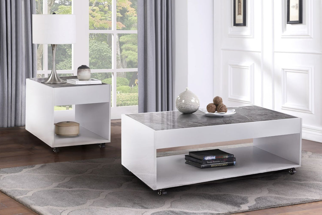 Sleek, modern, and effortlessly chic, the Elariel Collection stands out with understated elegance. These occasional tables take inspiration from European styling but update the look with contemporary materials, including an attractive grey sintered stone top. Dressed like delicate grey marble but crafted with incredible durability, the tabletops are non-porous and resistant to scratches, stains, and extreme temperatures in a way true marble can only dream of. The bases boast a stunning white lacquer finish with a lustrous gloss, but functionality is also at play here thanks to open lower display shelves for convenient storage and casters for ease of movement. Stunning yet practical, the Elariel is the perfect way to showcase your modern tastes.