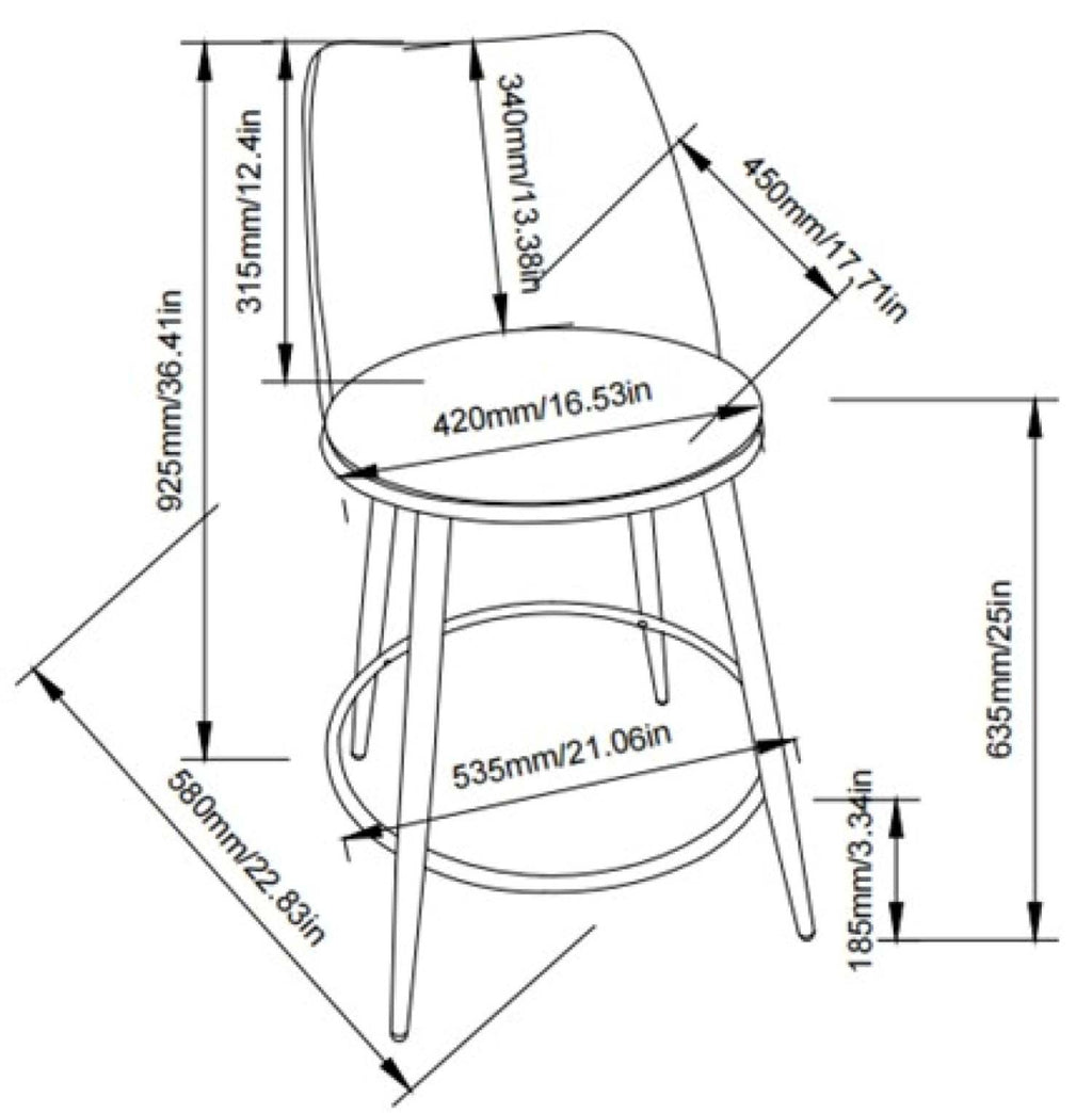 - Dining Chair : L 17.71" x W 16.53" x H 36.42"