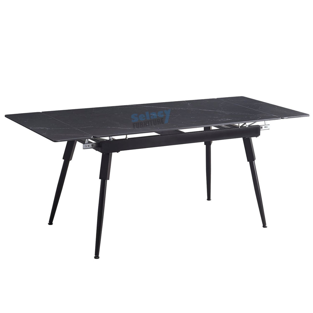 Extension Table: Sintered Stone Black Marble Top With Black Steel Legs.