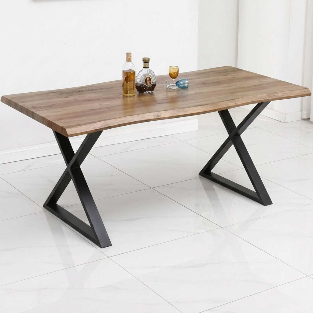 - Faux Live Edge Wood Table with Black Metal X Shape Legs