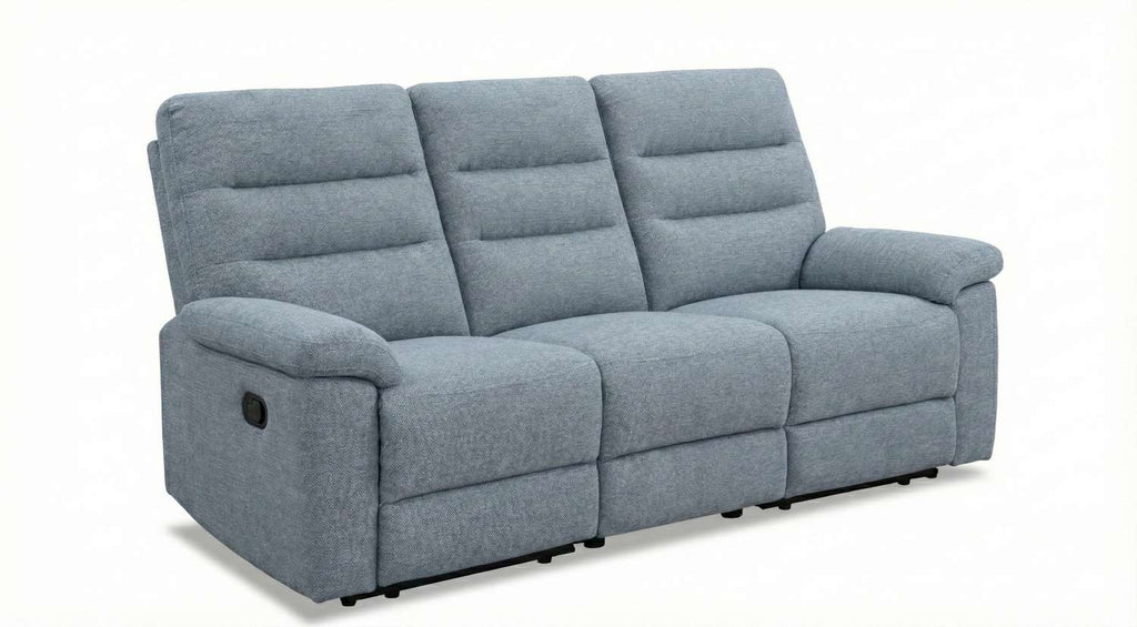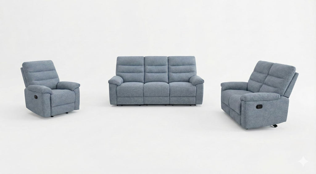 Upgrade your living space with this comfortable and stylish fabric manual recliner sofa set in a modern grey finish. Upholstered in soft, durable fabric, it features plush cushioning and a smooth reclining mechanism for effortless relaxation.