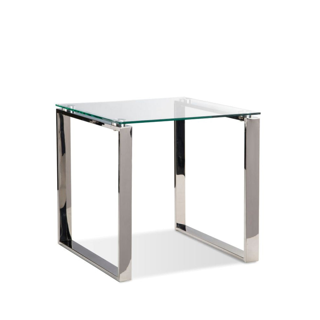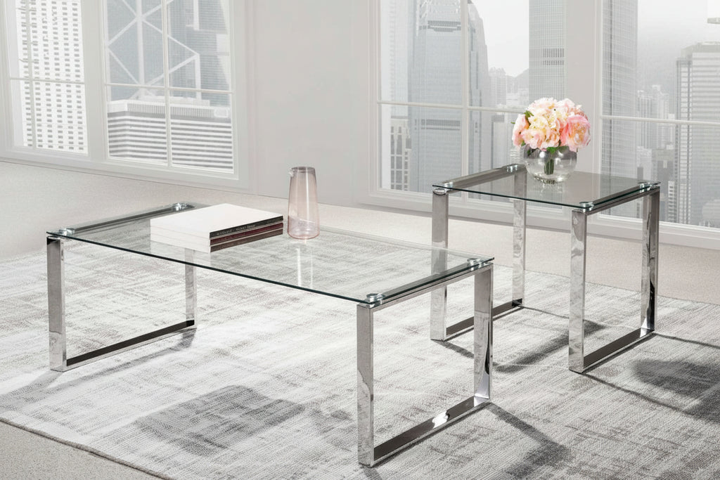Sleek and modern, the Metro coffee table adds a strong dose of style to any room. This minimalist profile boldly commands your eye thanks to the contemporary U-shaped framing of the base in a brightly shining chrome finish. Constructed from sturdy stainless-steel, the base easily holds the thick, clear tempered glass top aloft. This light and airy combination boasts a surprisingly large tabletop with lots of space for mugs, lamps, or décor, providing ample function without appearing overly large or heavy. Glass and open metal lets light shine through and reflect, giving the table a bright and clean aesthetic that will instantly refresh your home. Other coordinating occasional tables are also available.