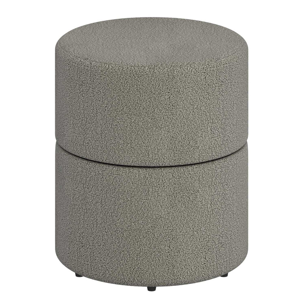Elevate your living space with the Novar Round Swivel Ottoman, upholstered in luxurious warm grey boucle fabric. Its 360° swivel top offers versatile seating or footrest options, while the medium-soft polyester foam cushion delivers refined comfort. Designed to support up to 300 lbs, this elegant piece blends modern style and functional sophistication seamlessly.