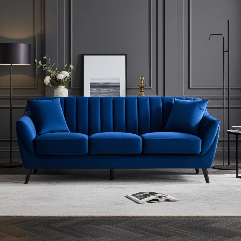 For a living room that evokes understated glamour, the Odette collection is an impeccable fit. Inspired by mid-century silhouettes, this sofa has a sleek profile that will keep your room from feeling cluttered, making it ideal for smaller spaces. Contemporary channel tufting on a tight back follows the contour to cushioned arms. Upholstered in tailored velvet, this sofa is accompanied by matching velvet pillows for that perfect finishing touch. The Odette collection is also available in grey.