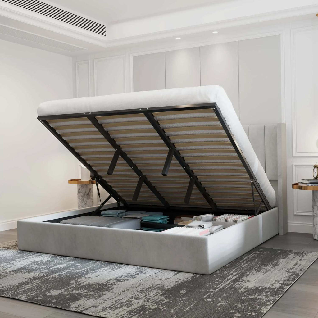 Get the best of both worlds with the luxurious comfort and practicality of the Oliver Light Grey Contemporary Soft Padded Upholstered Platform Storage Bed. The solid and engineered wood construction, along with the manufactured wood slat system, provides sturdy support while the hydraulic lift offers convenient storage space. Easy assembly and soft tufted fabric upholstery make this bed a must-have for any modern bedroom.