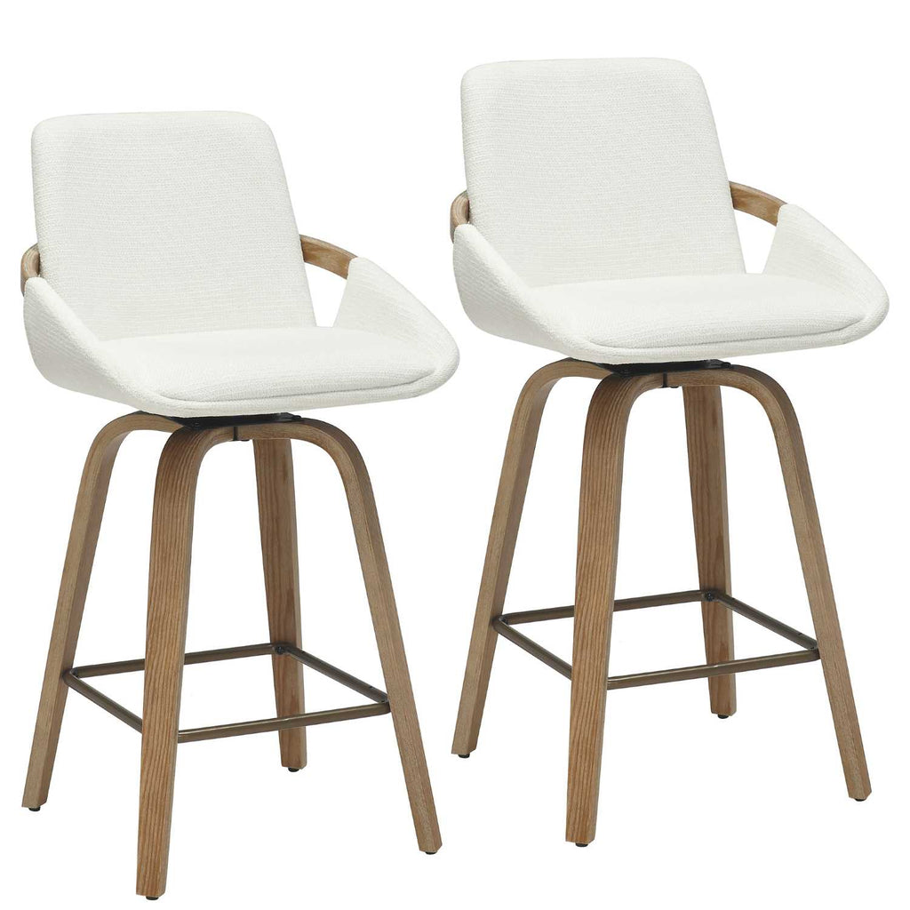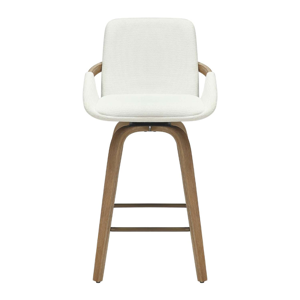 The Parker 26" Ivory Swivel Counter Stool blends refined style with practical comfort. Featuring a 360° swivel seat upholstered in soft, water-repellent performance fabric, it promises easy movement and durability. Its medium-firm polyester foam cushion offers lasting support, while solid wood legs with a whitewash finish and an aged gold footrest add elegant contrast. Ideal for sophisticated kitchen or bar settings, this stool combines timeless materials with thoughtful design.