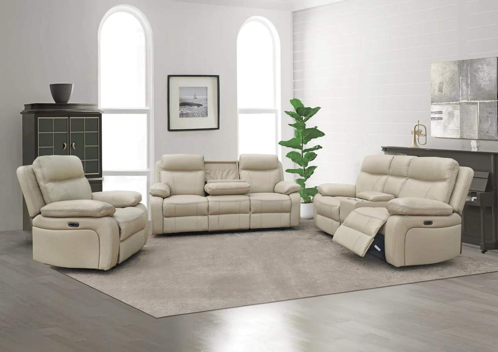Enhance your living room with the Real Leather Power Recliner Set with Dropdown Tray 543, a harmonious blend of elegance, durability, and comfort. This complete set includes a chair, loveseat, and sofa, all featuring plush pillow-top arms, elegant tufted accents, and a warm rich brown leather finish. Crafted with a solid wood and metal frame, it ensures lasting stability, while high-density foam cushions provide superior comfort for extended relaxation. The dropdown tray adds a functional touch, making this set as practical as it is sophisticated.