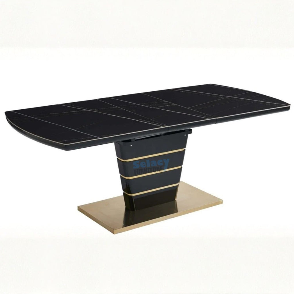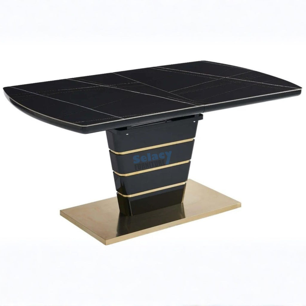 Elevate your dining experience with the Ryan Black Extendable Ceramic 7PC Dining Set. This sophisticated collection features a sleek black ceramic table that extends to accommodate larger gatherings, paired with a curated mix of black and grey chairs that balance contemporary style with comfort. Perfect for modern homes seeking versatile entertaining solutions without compromising on elegance.