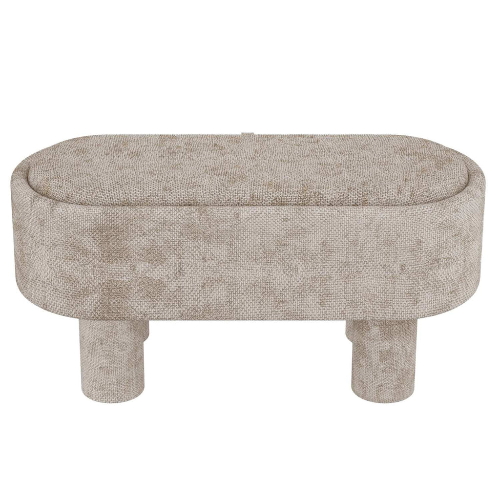 The Sezron Storage Ottoman Bench in Beige offers a refined blend of style and practicality. Its modern oval shape pairs elegantly with soft textured fabric upholstery, creating a sophisticated seating solution. Featuring a deep storage compartment beneath a lift-off top, it keeps your space organized while providing a comfortable seat with a polyester foam cushion. Designed to support up to 250 lbs at a convenient 19" seat height, this ottoman bench enhances any room with subtle elegance and functional charm.