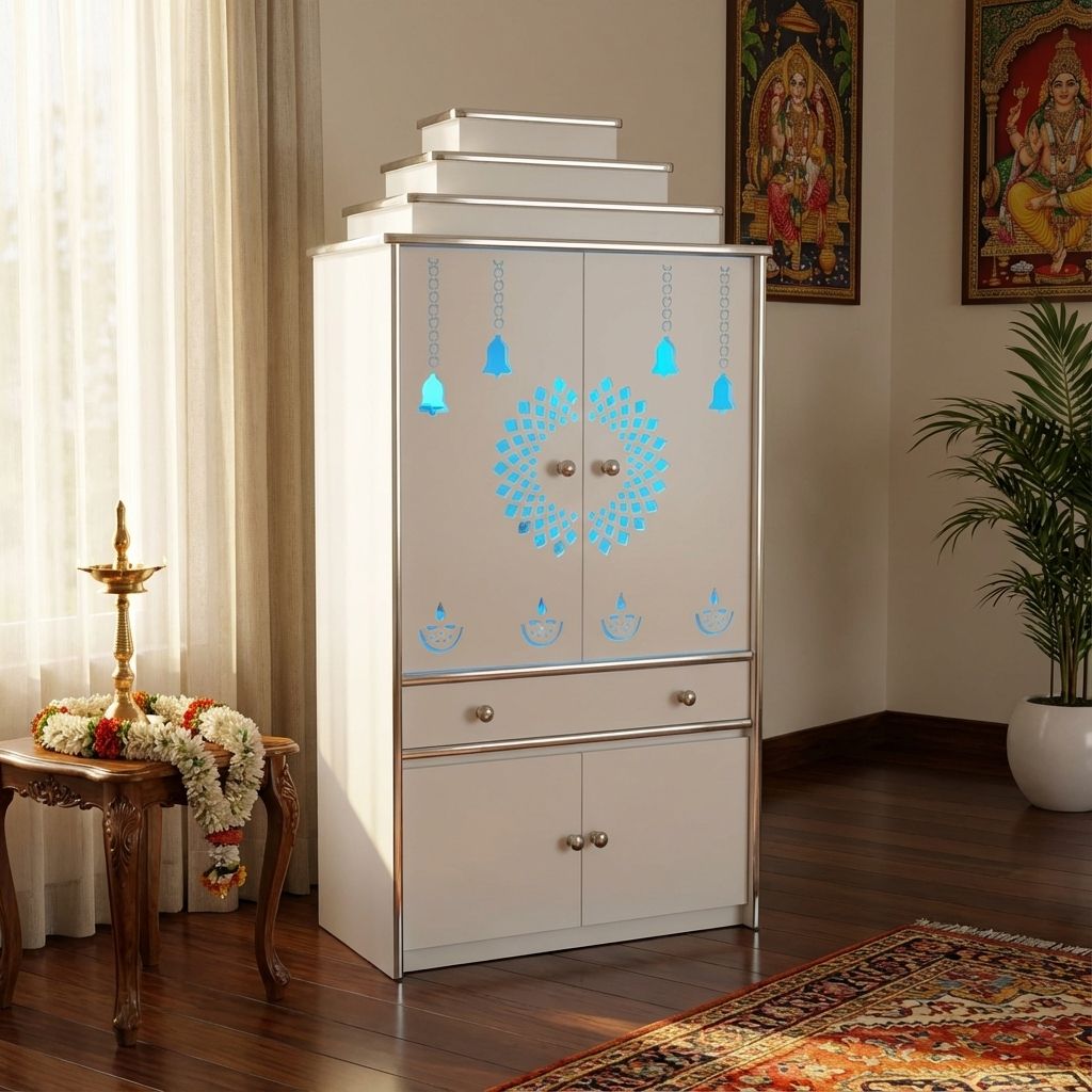 Handcrafted in Canada, this Shiva Pooja Mandir brings reverence and elegance to your spiritual space. Select from a curated palette of finishes to complement your home's aesthetic while honouring your daily practice. Each unit is thoughtfully constructed to serve as a dedicated sanctuary for prayer and meditation, combining traditional craftsmanship with contemporary design sensibilities.