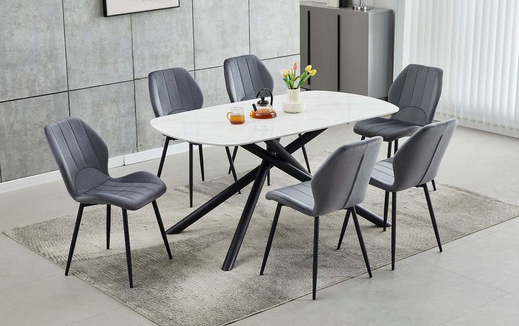 Expertly crafted Sintered Stone White Marble Table meets the luxury and durability of Black Steel Legs.