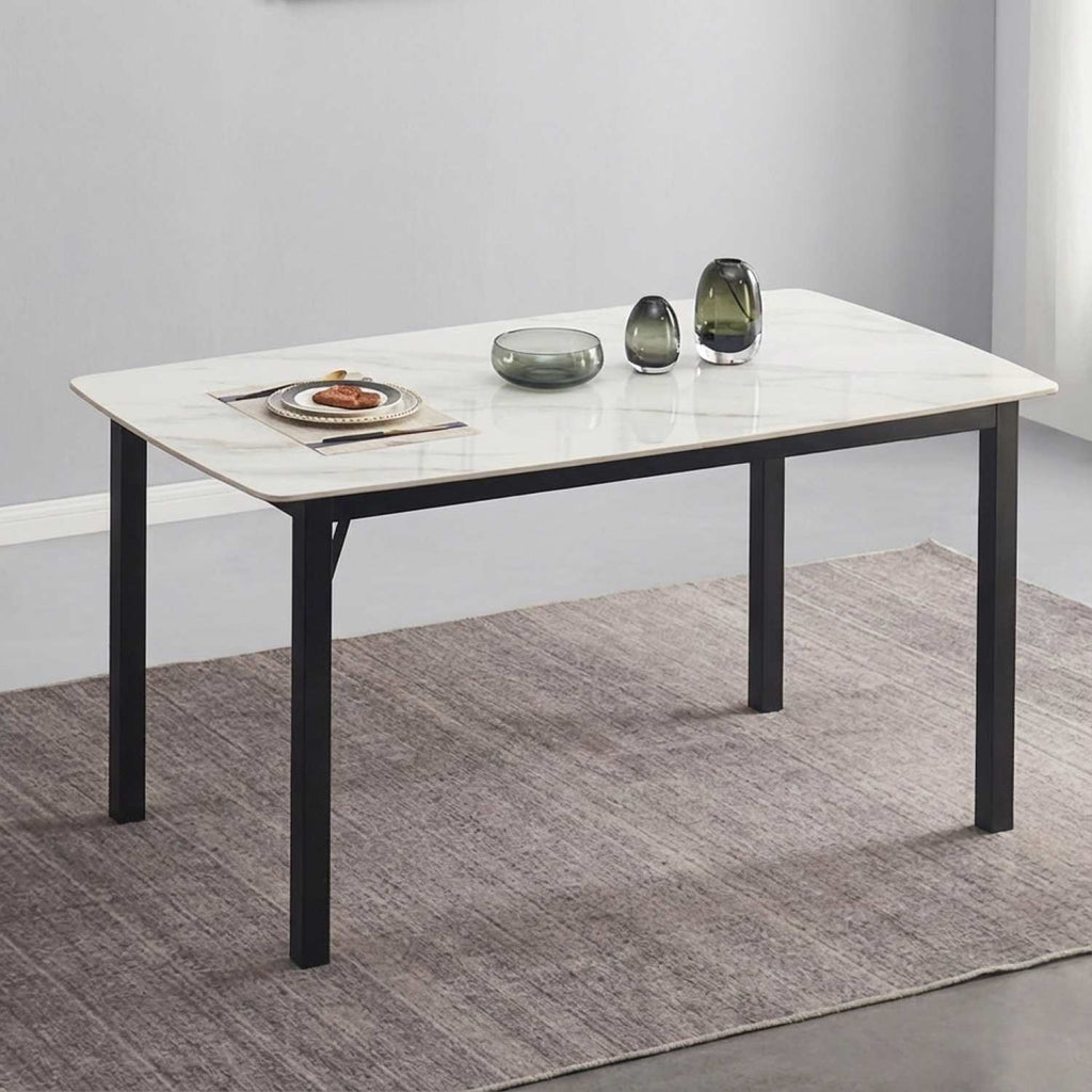 - Table : Sintered Stone White Marble Top With Black Steel Legs.